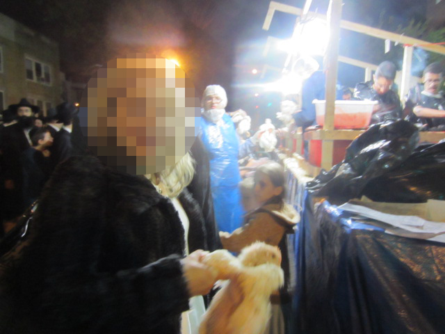 At this point I hopped on the F train to Brooklyn for my second activity of the night: kapparot, the ancient Jewish ritual of swinging a live chicken round your head and then giving it to be slaughtered. I met my friends the Zs and after a quick costume change (we decided M’s red skirt wasn’t frum enough), we hopped into the Rabbi’s minivan, picked up another couple and headed for the exotic and far-flung neighborhood of Crown Heights, Brooklyn’s enclave for the Lubavitch Chasids. We walked into the heart of the hood and, surrounded by an army of Yiddish and Hebrew speaking schoolgirls and young boys asking for change for the Rebbe, engaged in Kapparot. The three men went and bought live chickens, held them by their wings, brought them back to us ladies (standing at the periphery) and, as we recited a prayer, twirled them around our heads three times. There were a lot of high-pitched clucking/squealing noises (babies and chickens sound very similar.) After we recited the prayers, we took the chickens ourselves, walked up to the little slaughter booth, where there were a few men who deftly snatched up the chickens, cut their throats, and tossed the carcasses on a pile behind them.