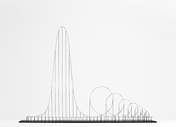 “Euthanasia Coaster” is a hypothetic euthanasia machine in the form of a roller coaster, engineered to humanely – with elegance and euphoria – take the life of a human being. Riding the coaster’s track, the rider is subjected to a series of intensive motion elements that induce various unique experiences: from euphoria to thrill, and from tunnel vision to loss of consciousness, and, eventually, death. Thanks to the marriage of the advanced cross-disciplinary research in space medicine, mechanical engineering, material technologies and, of course, gravity, the fatal journey is made pleasing, elegant and meaningful. Celebrating the limits of the human body but also the liberation from the horizontal life, this ‘kinetic sculpture’ is in fact the ultimate roller coaster: John Allen, former president of the famed Philadelphia Toboggan Company, once sad that “the ultimate roller coaster is built when you send out twenty-four people and they all come back dead. This could be done, you know.”