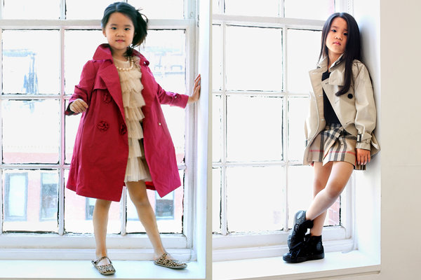 On the right: “Don’t spill juice on this coat. It’s very expensive.” ($1,570 to be exact.) On the left: And you thought only Cara Delevingne could model Burberry with such sass.